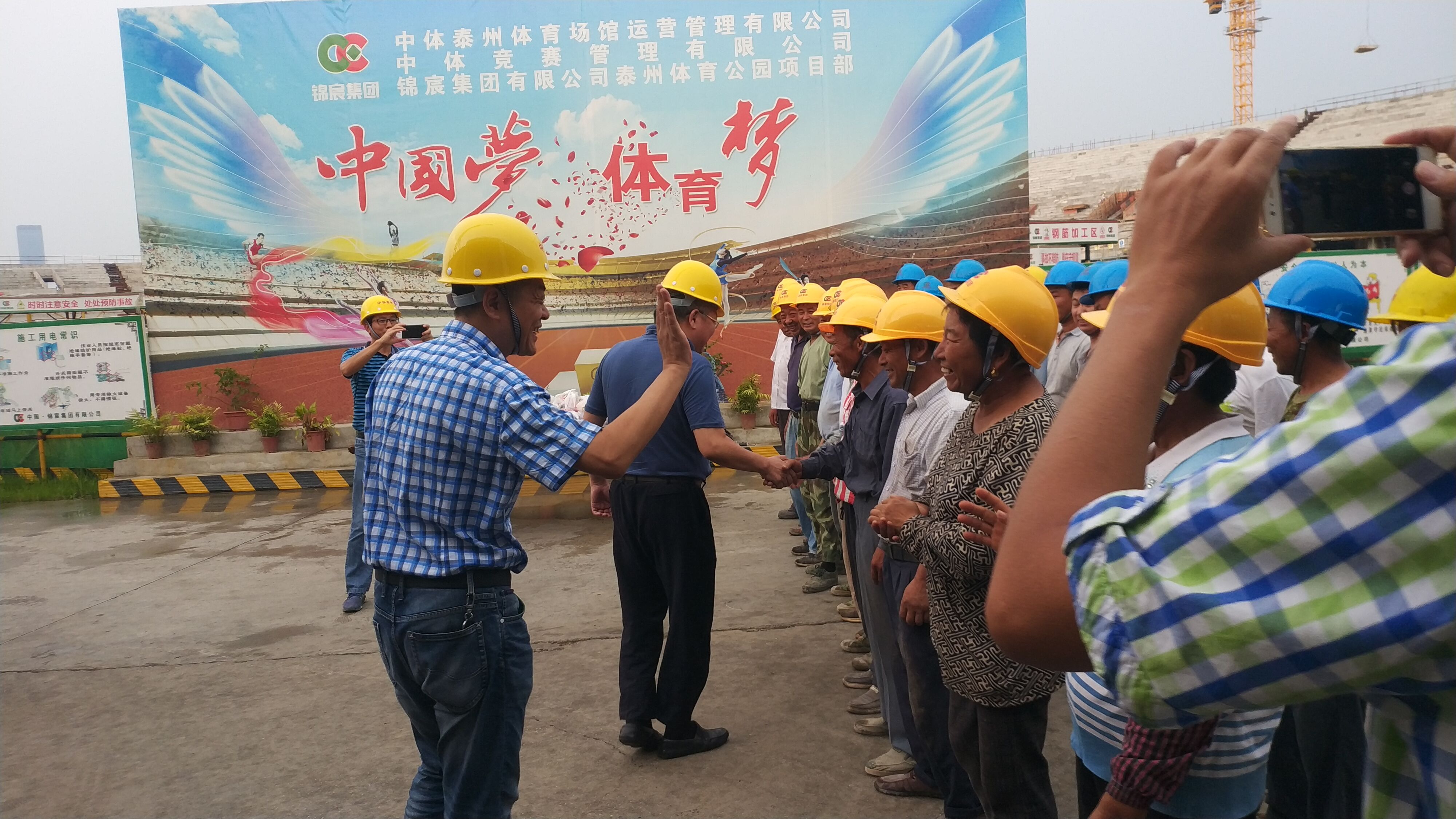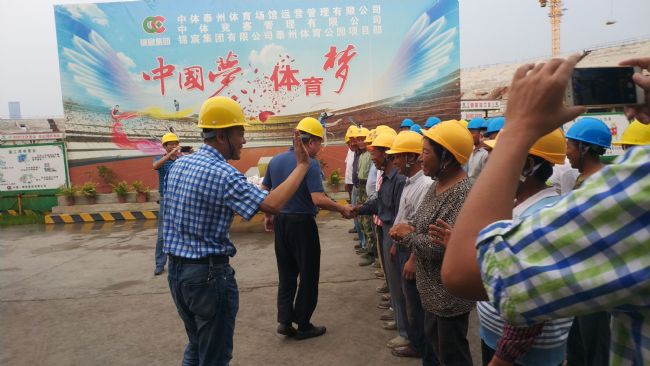 7月26日下午,泰州市人民政府徐保國副秘書長一行至集團公司泰州體育公園項目現場“送清涼”,慰問一線民工,囑咐民工同志們,在炎熱的夏天,在施工過程中要注意防暑降溫、注意安全。