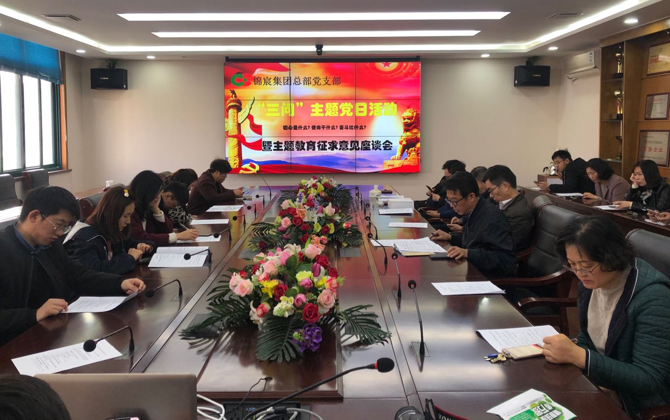1121日下午,錦宸集團(tuán)總部支部開(kāi)展“三問(wèn)”主題黨日活動(dòng)暨“不忘初心、牢記使命”主題教育征求意見(jiàn)座談會(huì),集團(tuán)公司總部支部黨員、總部職工參會(huì)。
