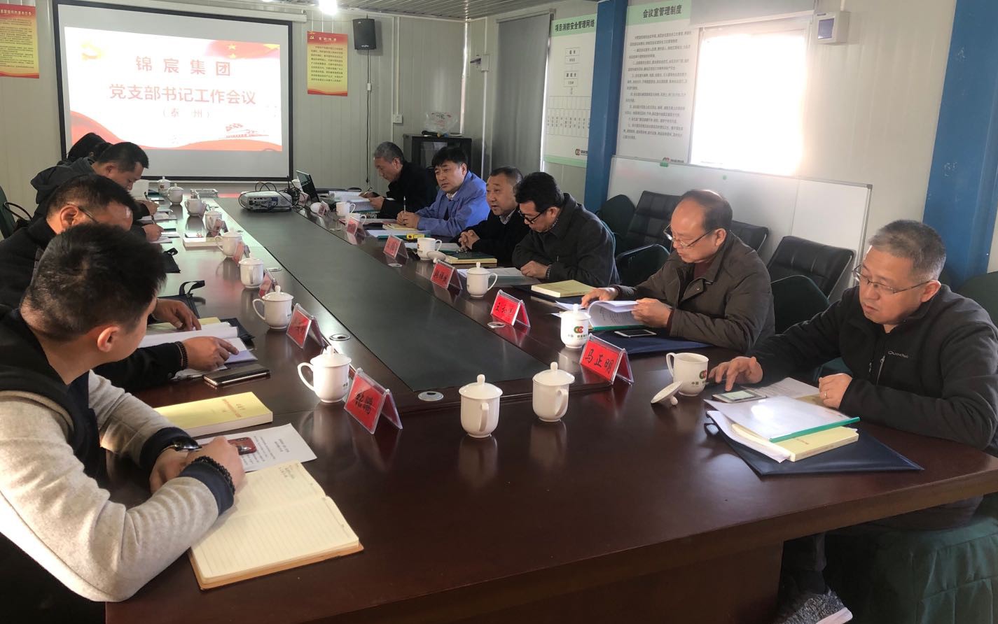 322日下午,錦宸集團在泰地區基層黨支部書記工作推進會在泰州市二人醫開發區醫院項目部會議室召開。集團公司黨委書記王春林主持會議,泰州地區各黨支部書記、黨務工作者參加會議。
