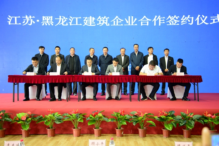 會上,江蘇黑龍江兩省住房城鄉(xiāng)建設廳簽署了《關于加強兩省在建設領域合作的框架協議》,相關建筑企業(yè)簽訂了《企業(yè)全面合作協議》。