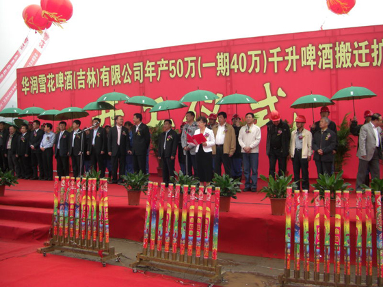 5月31日上午9時58分,華潤雪花(吉林)啤酒有限公司50萬千升/年(一期40萬千升/年)搬遷擴建項目釀造綜合樓基礎工程舉行隆重的奠基儀式,吉林市市長趙靜波出席儀式。