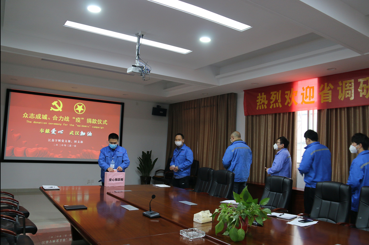 活動中,江蘇宇輝支部黨員、團員重溫入黨、入團誓詞,強化責任擔當,大家結(jié)合自身實際就如何在疫情防控中發(fā)揮黨員、團員先鋒模范作用作了表態(tài)發(fā)言,并進行了抗疫愛心捐款活動。