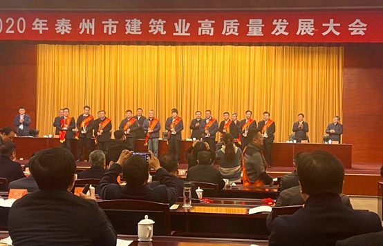 會上,錦宸集團被表彰為泰州市建筑業企業綜合實力30強企業,董事長李煥軍被表彰為“泰州市建筑業優秀企業家”,副董事長彭玉明被表彰為“泰州市建筑業外埠市場開拓標兵”,吳偉同志被表彰為“泰州市建筑業發展優秀人才”,集團公司京泰路南延綜合管廊工程(省級建筑產業現代化示范項目)獲得資金獎勵48.9萬元,江蘇宇輝住宅工業有限公司(省級建筑產業現代化示范基地)獲得資金獎勵50萬元。