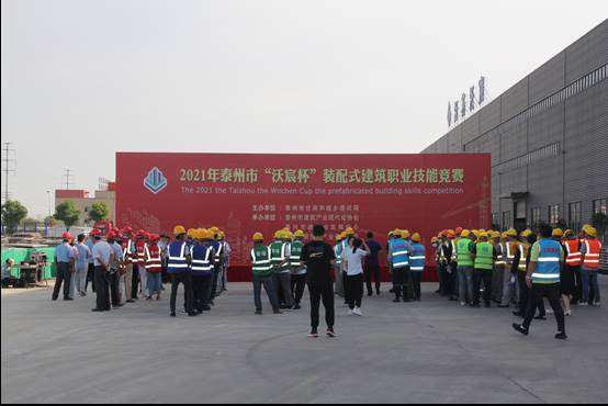 9月24日上午,由泰州市住建局主辦,泰州市建筑產業現代化協會、泰州市建筑業發展中心、江蘇沃宸住宅工業有限公司承辦的2021泰州市“沃宸杯”裝配式建筑職業技能競賽,在沃宸廠區舉行了大賽開幕儀式,江蘇省建筑產業現代化創新聯盟副會長陸建生到場指導并致辭,各主辦、承辦、協辦單位領導、嘉賓以及競賽專家、裁判員、選手、會務組人員等100余人參加。