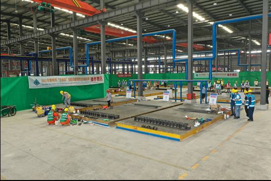 競賽分為理論知識和技能實操兩部分考核內容,共設構件制作、裝配吊裝和灌漿施工3個專業,其中構件制作11個隊、裝配吊裝11個隊、灌漿施工10個隊。