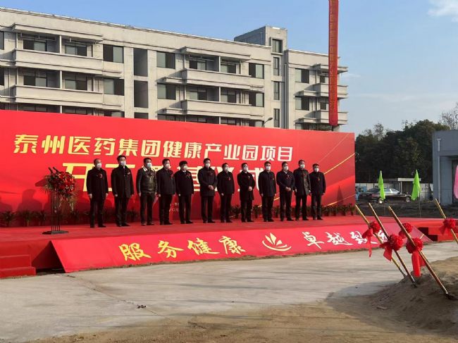 近日,泰州醫(yī)藥集團健康產業(yè)園項目舉行開工奠基儀式。海陵區(qū)區(qū)長劉劍波、區(qū)人大常委會主任丁和扣、海陵工業(yè)園區(qū)黨工委書記王鶴、蘇中藥業(yè)集團董事長唐仁茂、泰州東部新城發(fā)展集團董事長黃亮、泰州醫(yī)藥集團董事長秦林、蘇中藥業(yè)集團副總經理唐海濤、錦宸集團董事長李煥軍等領導出席開工奠基儀。