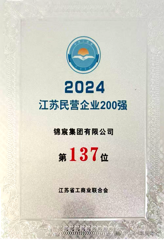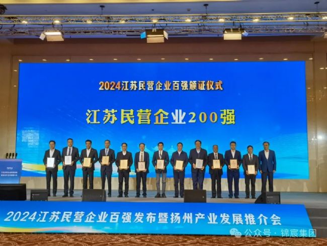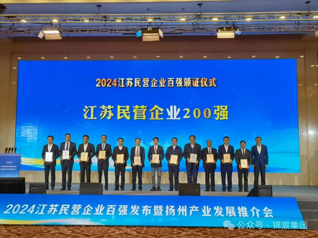 喜訊:錦宸集團入選“2024江蘇民營企業200強”