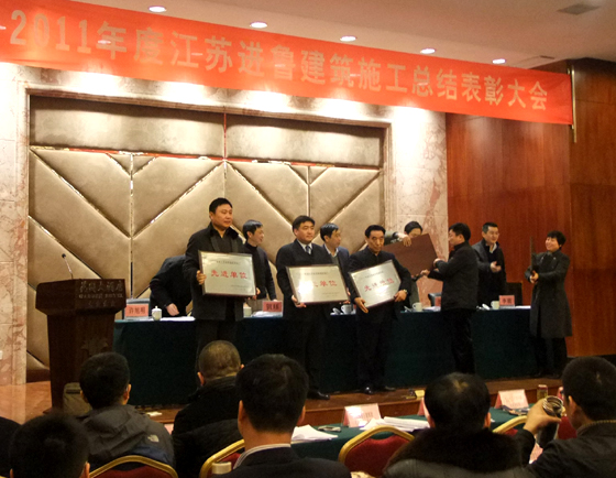 會議對2011年度江蘇省進魯施工先進集體和先進個人進行了表彰。錦宸集團山東分公司榮獲“江蘇省進魯施工先進單位”稱號;劉亞明項目部榮獲“先進項目部”稱號;唐金來、李德章等四位同志榮獲“2011年度江蘇省進魯施工企業優秀建造師”稱號;蔣萬泉、李煥發同志被評為“安全生產、質量管理先進個人”。山東分公司全體人員將以此次會議為起點,認真做好各項工作,為公司的發展再作新貢獻。