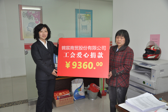 近日,錦宸百貨工會組織了愛心募捐活動。原錦宸百貨保潔員祝友蘭,今年三月因身體不適被姜堰市人民醫院檢查診斷為:肝臟惡性腫瘤,在接受醫院的第一個療程治療后,因經濟困難,辦理出院。錦宸百貨工會在得知此事后,立即向全體員工發出倡議,希望員工伸出援助之手,為正處于困難中的祝友蘭撐起一片蔚藍的天。