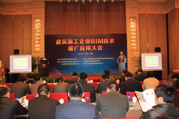 BIM(建筑信息模型)技術是建筑業信息化的重要組成部分,已經在發達國家的工程建設領域得到廣泛應用,并不斷發展。近年來,國內不少建設工程也相繼運用這項技術從事項目管理,該技術已被建設部列為“十二五”期間重點攻關項目。在我省建筑企業,特別是規模企業推廣應用BIM技術,將對我省建筑企業提高項目管理質量,提升項目精細化管理水平將起到十分重要的作用。為加快BIM技術在項目施工中的運用,11月9日省住房和城鄉建設廳,省建筑企業信息化建設專業委員會聯合國內多家知名軟件企業,在無錫舉辦了“建筑企業BIM技術推廣應用大會”, 省住房城鄉建設廳徐學軍副廳長、省建管局紀迅副局長等領導出席了會議,省建筑企業信息化建設專業委員會成員單位,全省部分一級資質企業總工程師和信息化建設負責人等300余人參加了會議。