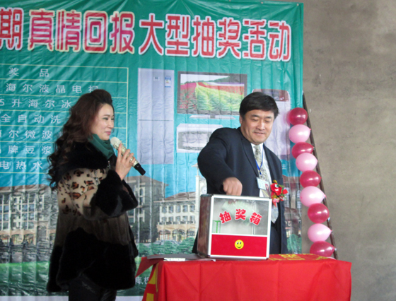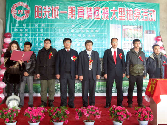 為回報廣大業主,整個抽獎活動,設立特等獎一名(55寸海爾液晶電視)、一等獎二名(225升海爾冰箱)、二等獎三名(海爾洗衣機)、三等獎六名(海爾微波爐)、四等獎十名(九陽豆漿機)、紀念獎若干名。抽獎現場,歌舞相伴,精彩紛呈,濃濃的喜慶氣氛將業主帶入了歡樂的海洋。
