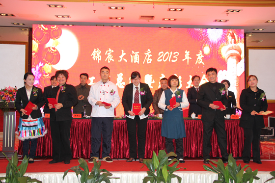 會上酒店對2013年度的優秀員工進行了表彰。酒店副總經理張躍琴作了2013年度工作報告,總結過去,計劃未來。隨后,集團公司黨委書記王春林同志對酒店發展提出了新的要求,他期望酒店在新的一年里,要圍繞“提升業務水平、完善制度建設、發展餐飲特色、加強能源管理、轉變營銷思路、抓牢安全工作”等六個方面,實行精細管理,扎實練好內功,努力打造具有“錦宸”特色的餐飲企業。