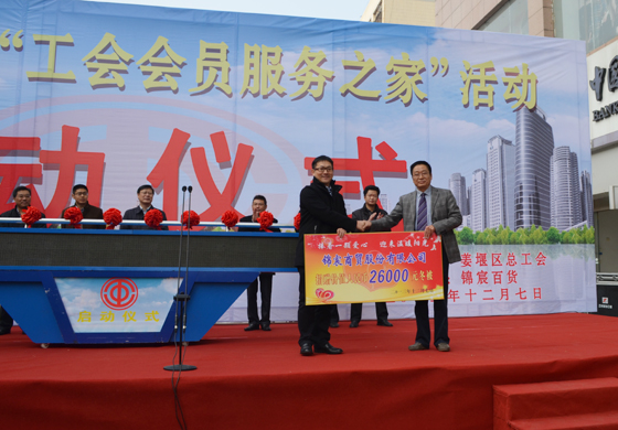 活動啟動儀式上,錦宸百貨向全區(qū)會員職工捐贈價值26000元的物品。侯亞軍總經(jīng)理代表成員單位發(fā)言,他說:“錦宸百貨作為協(xié)辦單位將全力支持活動的開展,精心打造會員服務(wù)之家,真正讓利于廣大會員,將錦宸百貨辦成工會會員的貼心之家。”