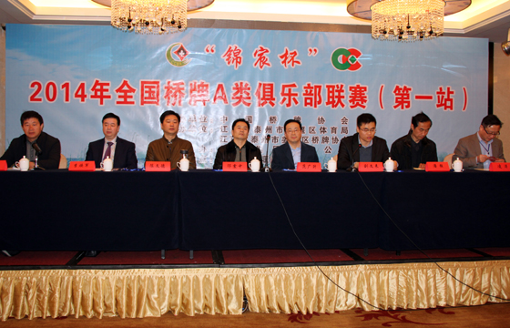 3月6日上午,由中國橋牌協會主辦,錦宸集團協辦的2014年“錦宸杯”全國橋牌A類俱樂部聯賽,在美麗的姜堰拉開帷幕,集團公司董事長李煥軍參加開幕式并致辭。