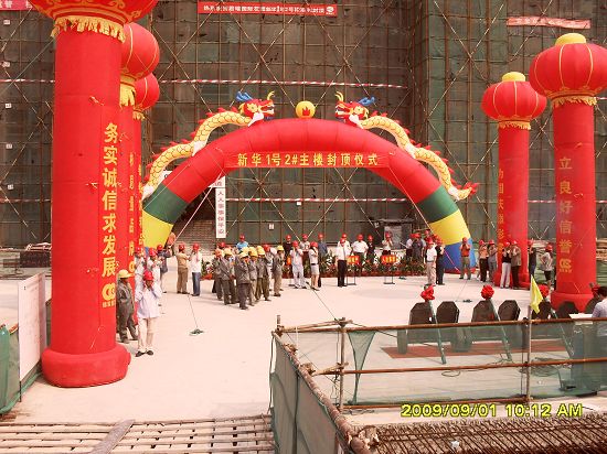 2009年9月1日上午,君瑞國際花園工地彩旗飄揚(yáng)、禮炮轟鳴,經(jīng)過七個月的奮戰(zhàn),該工程2#住宅樓如期封頂。唐山市路北區(qū)區(qū)委政府領(lǐng)導(dǎo)、唐山市人達(dá)集團(tuán)董事長韓文軍等出席了主樓封頂儀式,錦宸集團(tuán)董事長李煥軍發(fā)來賀信:預(yù)祝封頂儀式圓滿、成功。