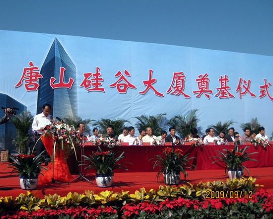 9月12日,由唐山金安房地產開發、錦宸集團有限公司承建的唐山重點形象工程硅谷大廈開工奠基。這座120米高的標志性建筑2011年建成后將成為唐山一新景觀。