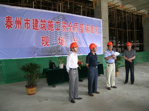 泰州市建管局黨委副書記王錦發(fā)帶領(lǐng)與會人員參觀了錦宸大廈的現(xiàn)場施工安全防護、臨時施工用電、機械設(shè)備安全管理、場容場貌、臨時設(shè)施、消防治安等,認(rèn)為現(xiàn)場施工管理、安全文明生產(chǎn)等工作都做得十分到位,值得學(xué)習(xí)、宣傳、推廣。他要求各安全監(jiān)督單位和建筑施工企業(yè)要以這次現(xiàn)場會為推動力,搶抓“全國安全生產(chǎn)月”活動機遇,高度重視建筑施工安全質(zhì)量標(biāo)準(zhǔn)化,建筑施工安全專項整治和建筑業(yè)農(nóng)民工安全教育培訓(xùn)等重點工作,倡導(dǎo)安全文化,落實安全責(zé)任,加大源頭治理,確保建筑施工安全。