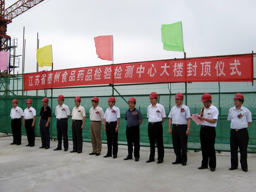 7月13日上午,由錦宸集團承建的泰州市食品藥品檢驗檢測中心大樓舉行隆重的封頂儀式。省食品藥品監督管理局局長李繼平,泰州市委副書記、市長姚建華,泰州市副市長王振南,市長助理何榕及市政府秘書長王東等出席儀式。