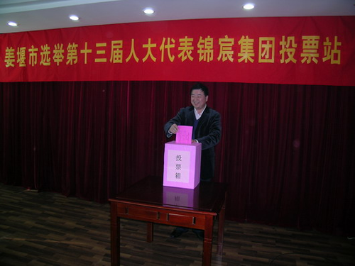 11月27日上午,根據姜堰市選舉委員會部署,姜堰市第十三屆人大代表換屆選舉錦宸集團投票站的投票工作順利開展,錦宸集團董事長李煥軍和公司員工在和諧的氛圍中投出自己莊嚴的一票。
