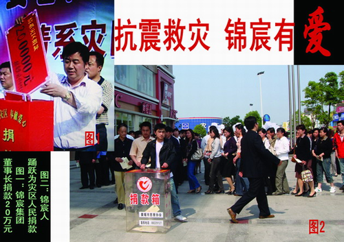 5月19日下午,錦宸集團舉行“抗震救災 錦宸有愛”傳遞愛心大行動。集團公司董事長、總經理李煥軍向全體干部職工發出倡議,號召大家為四川受災同胞重建家園奉獻愛心,他代表公司向地震災區捐款人民幣20萬元。