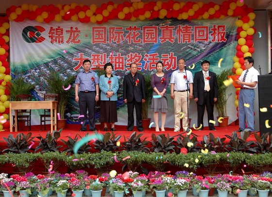 2009年5月16日上午,錦龍·國際花園銷售中心門前,鮮花簇擁、鑼鼓喧天、彩旗飄揚,經過周密策劃的“錦龍·國際花園真情回報抽獎活動”在這里隆重舉行。