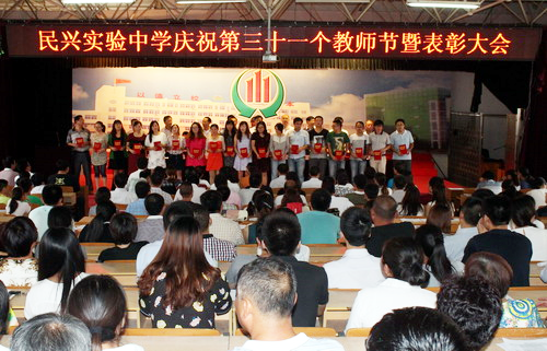 9月9日下午,民興中學隆重舉行第31個教師節表彰大會,對20個先進集體、137名先進個人進行了表彰。民興中學董事長李煥軍,校長曹福春,以及董事會成員、各部執行校長、各教學部各部門代表、學生代表,參加了大會。副校長王鵬主持了會議。