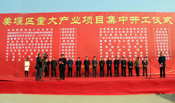 區委副書記、區長李文飆在開工儀式上致辭。他說,全區上下要繼續弘揚“三個不相信”精神,團結拼搏,扎實苦干,全力以赴推進招商引資和項目建設,不斷增強姜堰區經濟發展的動力和活力。他希望各項目投資人搶時爭效,全力加快項目建設進度,力爭項目早建設、早投產、早見效。李文飆表示,區委、區政府將始終不渝地致力打造服務最優、門檻最低、審批最簡、信用最高、安全最好的經濟發展環境,一如既往地為項目建設提供最優質的服務和最有力的保障,為“決勝全面小康、加速崛起振興”而共同奮斗。