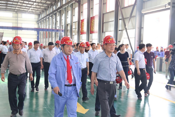 5月26日上午,姜堰區四套班子全體負責人,區法院院長、檢察院檢察長;各鎮區(街道)黨政主要負責人;區紀委、臺辦、發改委、經信委、科技局、公安局、財政局、人社局、國土分局、住建局、城管局、交通局、水利局、農委、商務委、衛計委、市場監管局、環保局、統計局、安監局、政務辦、監管局、規劃分局、國稅局、地稅局、供電公司、氣象局、人行、重大項目辦、考核辦、效能辦、消防大隊、4個駐外招商分局主要負責人等一行一百多人至江蘇宇輝視察觀摩,江蘇宇輝總經理全文林全程陪同講解。