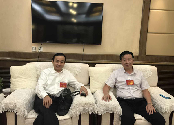 圖為黑龍江省江蘇商會會長李煥軍與黑龍江省委統(tǒng)戰(zhàn)部副部長、省工商聯(lián)黨組書記林寬海
