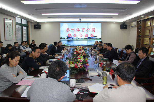 1129,泰州市體育公園項目銀企洽談會在錦宸集團舉行,泰州市體育局局長陳學東,泰州市財政局、泰州城投公司、駐姜銀行負責人以及項目公司相關人員參加活動,李煥軍同志主持會議。